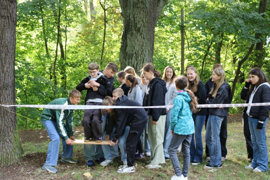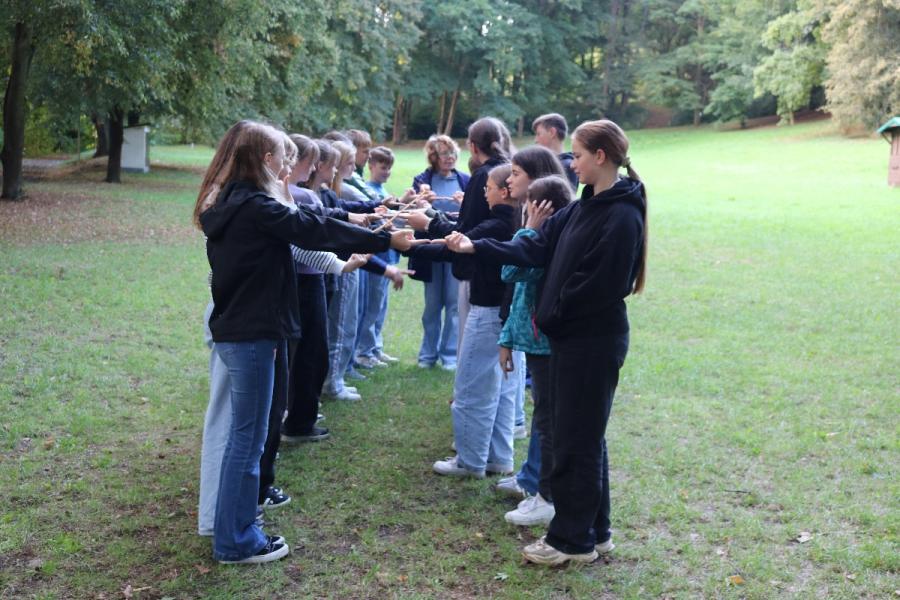 ... unter diesem Thema haben wir unseren dritten Durchgang mit den Teilnehmer der 7. Klassen an der Lebens(f)Festinitiative eröffnet. Bei verschiedenen Aktionen mussten die Teilnehmerinnen und Teilnehmer ihren Teamgeist beweisen. Als Gruppe mussten sie auf Holzklötzchen einen imaginären Sumpf überqueren. Die Herausforderung bestand darin, dass weniger Holzklötze als Teilnehmerinnen und Teilnehmer zur Verfügung standen. Später mussten sie eine Mauer überwinden und hatten nur ihre Muskelkraft und ein Holzbrett zur Verfügung. Aber sie haben alle Herausforderungen sehr gut gemeistert. Wir hatten viel Freude dabei.