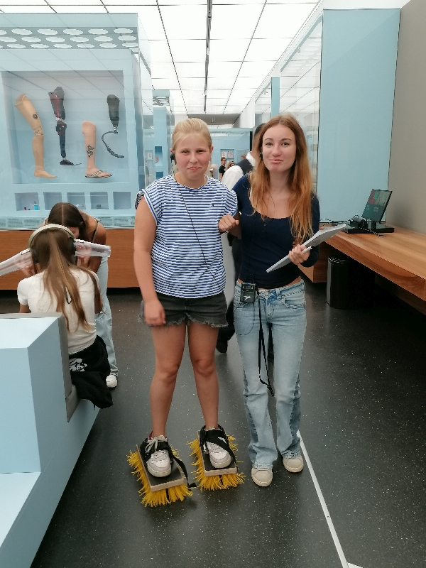 Nach einer Führung in der Dauerausstellung „Abenteuer Mensch“ erforschten die Schüler mit konkreten Aufgaben die verschiedenen Themenräume der Ausstellung. Beginnend beim „Gläsernen Menschen“ ging es zum Themenraum „Leben und Sterben“, „Sexualität“ bis zur „Bewegung“. Dabei konnten sie nicht nur einen Blick auf die zahlreichen Exponate werfen, sondern durften auch ausprobieren und dabei viel Neues erfahren.