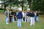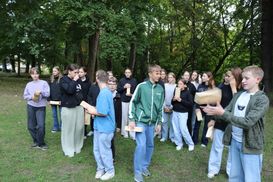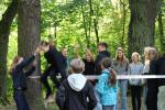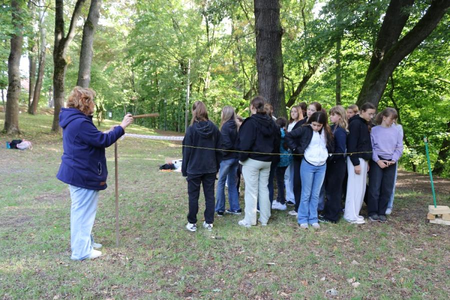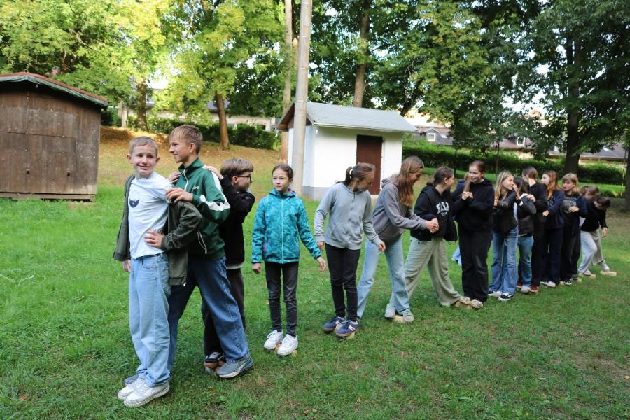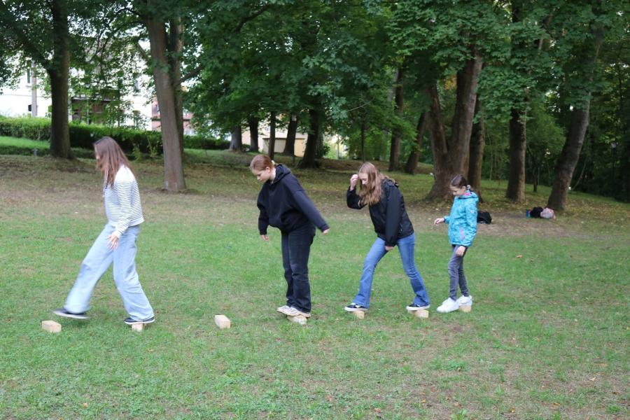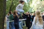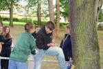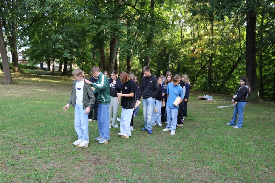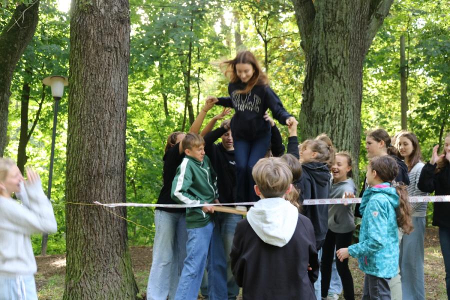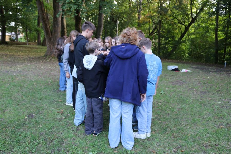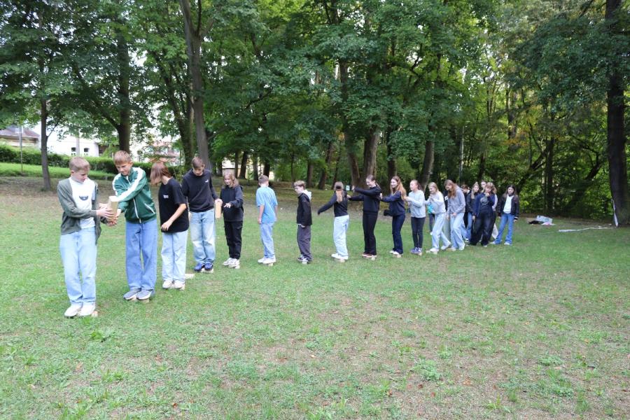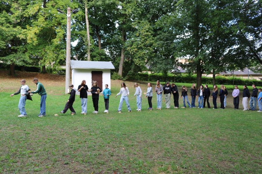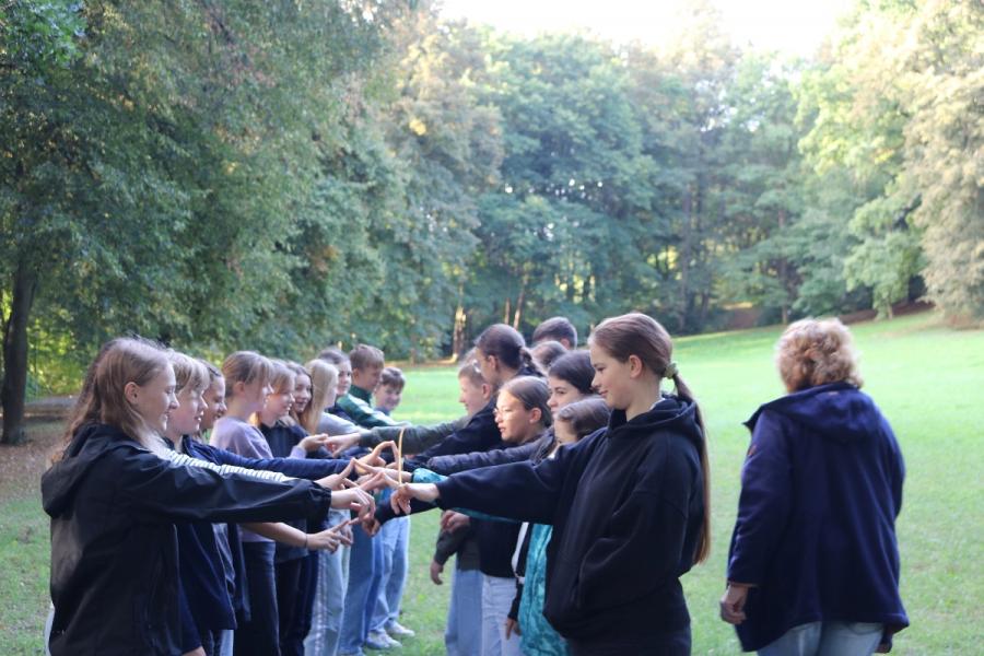 ... unter diesem Thema haben wir unseren dritten Durchgang mit den Teilnehmer der 7. Klassen an der Lebens(f)Festinitiative eröffnet. Bei verschiedenen Aktionen mussten die Teilnehmerinnen und Teilnehmer ihren Teamgeist beweisen. Als Gruppe mussten sie auf Holzklötzchen einen imaginären Sumpf überqueren. Die Herausforderung bestand darin, dass weniger Holzklötze als Teilnehmerinnen und Teilnehmer zur Verfügung standen. Später mussten sie eine Mauer überwinden und hatten nur ihre Muskelkraft und ein Holzbrett zur Verfügung. Aber sie haben alle Herausforderungen sehr gut gemeistert. Wir hatten viel Freude dabei.