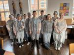 Anschließend erhielten wir eine Führung durch die Fabrik, während die Produktion lief. In „schicke“ Hygienemäntelchen und Kappen gekleidet, sahen wir, wie die rohen Zutaten zu verschiedenen Nudelsorten verarbeitet wurde. Wir beobachteten, wie die Nudeln geformt, getrocknet und schließlich abgepackt wurden. Es war beeindruckend zu sehen, wie viel Arbeit und Präzision in der Herstellung von Nudeln steckt. Bei Temperaturen von über 35 Grad standen so manchem die Schweißperlen auf der Stirn. Dafür wurden wir in der Produktionshalle selbst mit süßen Gerüchen und im Anschluss mit einer Geschenkpackung Farfalle belohnt.